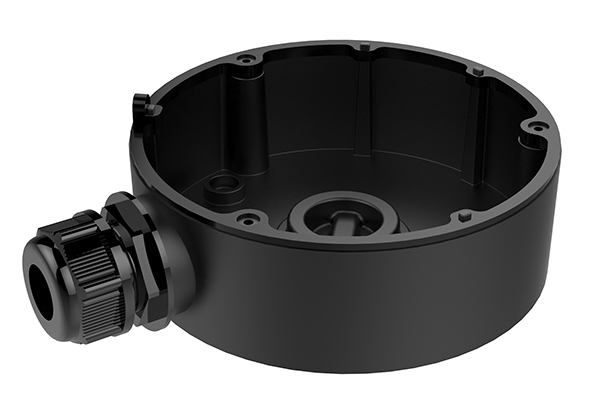 Description: Junction box with conduit intake, black aluminum alloy, Dimensions: Φ4.37 inches, Weight: 0.53 lbs, Max load capacity: 9.9 lbs