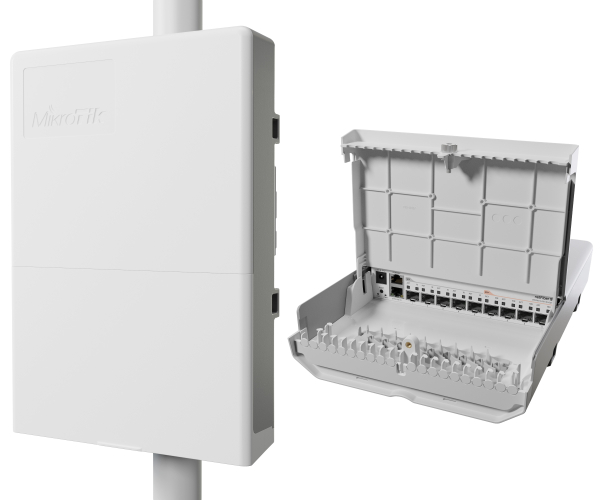 The CRS310-1G-5S-4S+OUT netFiber 9 is an outdoor fiber smart switch designed for 10G optical networks in harsh or remote environments. As the successor to the FiberBox, it combines Gigabit Ethernet, SFP, and SFP+ connectivity with support for light routing, making it ideal for outdoor aggregation, wireless backhaul, and fiber distribution.