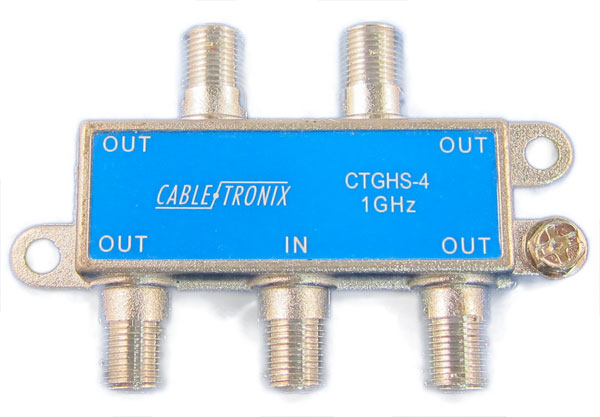 Description: 4 Way splitter 5-1,000 MHz, circuit board solder back